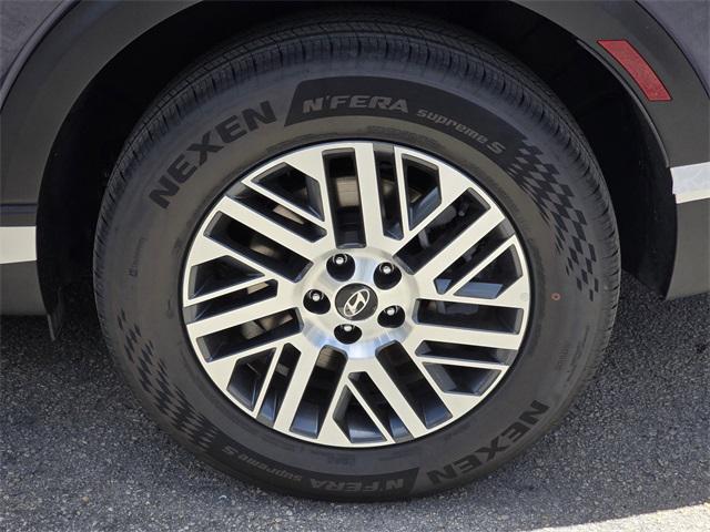 Equipped with Option Group 01, 3rd row seats: split-bench, 4-Wheel Disc Brakes, 8 Speakers, ABS brakes, Air Conditioning, Alloy wheels, AM/FM radio: SiriusXM, Apple CarPlay & Android Auto, Audio memory, Auto High-beam Headlights, Auto-dimming door mirrors, Auto-dimming Rear-View mirror, Auto-leveling suspension, Automatic temperature control, Brake assist, Bumpers: body-color, Cargo Net, Cargo Organizer, Cargo Tray, Carpeted Floor Mats, Compass, Delay-off headlights, Driver door bin, Driver vanity mirror, Dual front impact airbags, Dual front side impact airbags, Electronic Stability Control, Emergency communication system: None, Exterior Parking Camera Rear, First Aid Kit, Four wheel independent suspension, Front anti-roll bar, Front Bucket Seats, Front Center Armrest, Front dual zone A/C, Front reading lights, Fully automatic headlights, Garage door transmitter: HomeLink, H-Tex Leatherette Seat Trim, Heated and Ventilated Front Bucket Seats, Heated door mirrors, Heated front seats, Heated rear seats, Heated steering wheel, HVAC memory, Illuminated entry, Knee airbag, Leather steering wheel, Low tire pressure warning, Memory seat, Navigation System, Occupant sensing airbag, Outside temperature display, Overhead airbag, Overhead console, Panic alarm, Passenger door bin, Passenger vanity mirror, Power door mirrors, Power driver seat, Power Liftgate, Power moonroof, Power passenger seat, Power steering, Power windows, Radio data system, Rear air conditioning, Rear anti-roll bar, Rear audio controls, Rear reading lights, Rear seat center armrest, Rear side impact airbag, Rear window defroster, Rear window wiper, Reclining 3rd row seat, Remote keyless entry, Security system, Speed control, Split folding rear seat, Spoiler, Steering wheel mounted audio controls, Tachometer, Telescoping steering wheel, Tilt steering wheel, Traction control, Trip computer, Turn signal indicator mirrors, Variably intermittent wipers, Ventilated front seats, Ventilated rear seats, and Wheels: 18" x 8.0J Alloy.